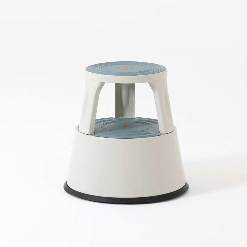 Este taburete está fabricado con una primera plataforma a 42 cm del suelo y una segunda plataforma en la parte superior del escalón. Las plataformas están cubiertas con una superficie antideslizante para evitar caídas.