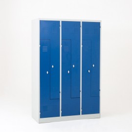 La taquilla con puertas en L, también conocida como taquilla con puertas en Z, combina comodidad y ahorro de espacio. Esta taquilla vestuario barata es ideal para equipar el área de vestuarios del personal que trabaja en tiendas, hospitales, entidades colectivas, talleres, obras de construcción y profesiones del sector industrial.