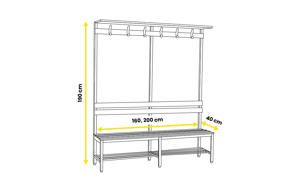 • Banco simple con percheros 1,60 m:
