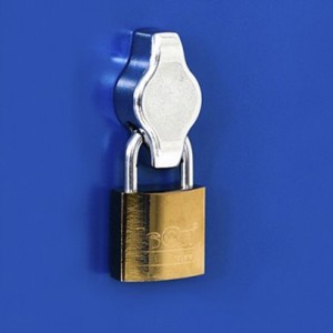 Esta solución es ideal en clubes deportivos o escuelas, por ejemplo. Permite cerrar la taquilla metálica con un candado. En este caso, los aldabones tienen una pequeña ranura para introducir el candado. Si desea bloquear sus taquillas con este tipo de cierre, le invitamos a que advierta a los usuarios que proporcionen un candado compatible (apertura disponible: 0,8 cm como máximo).